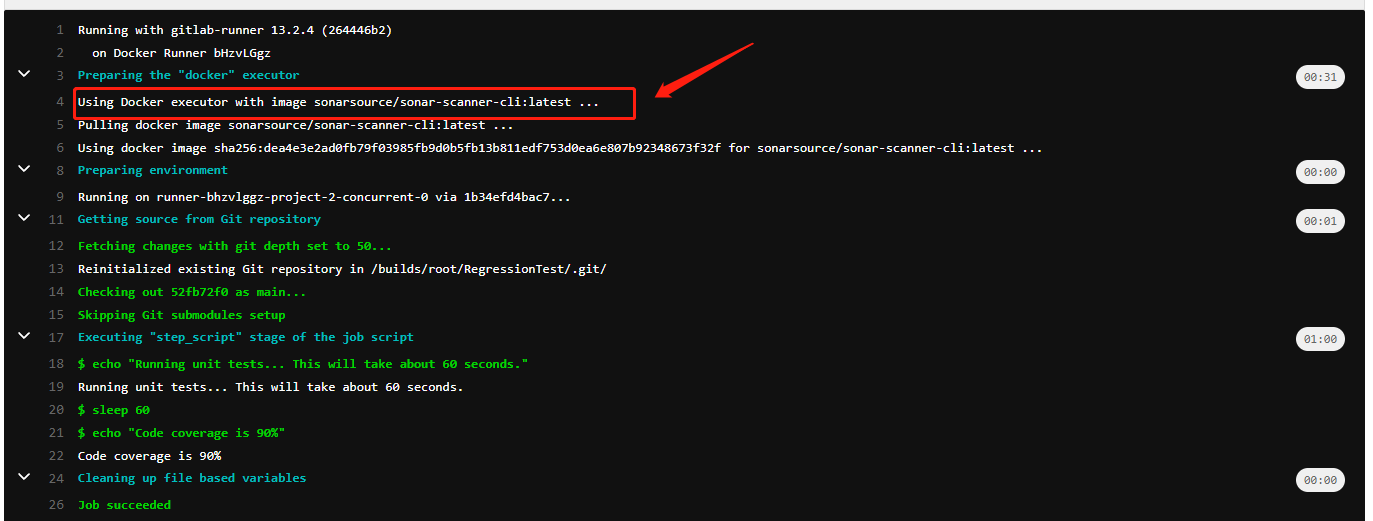 docker exec -it gitlab-runner gitlab-runner register -n \ --url http://139.198.166.208 \ --registration-token 9zEbBYXSyqJqpNb9QSNh \ --executor docker \ --description "Docker Runner" \ --docker-image "sonarsource/sonar-scanner-cli:latest" \ --docker-volumes /var/run/docker.sock:/var/run/docker.sock