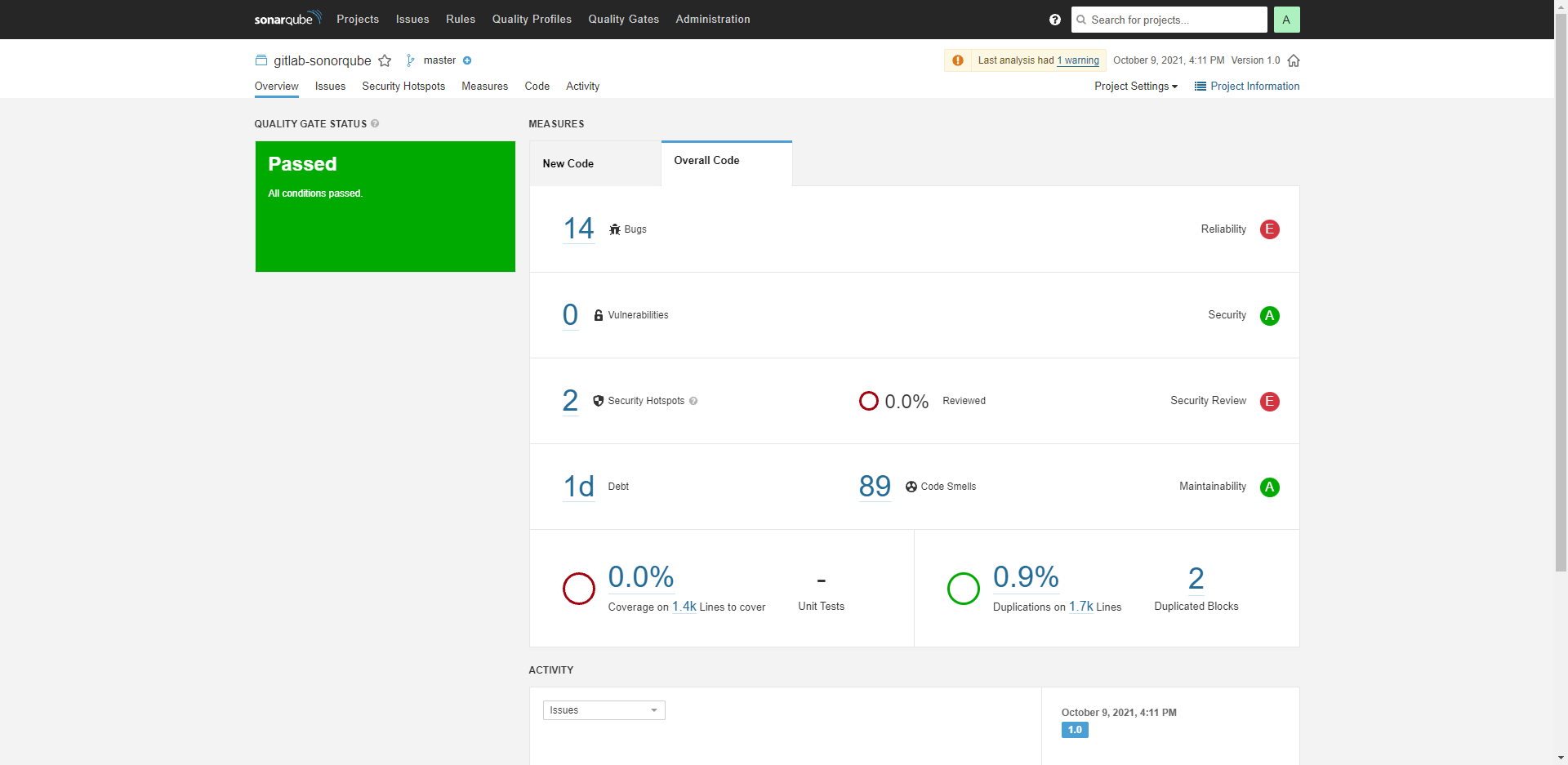 開發(fā)人員提交代碼到gitlab倉庫后,觸發(fā)master分支自動合并任務(wù),并進(jìn)行代碼掃描(可改成其他測試分支),掃面結(jié)果返回到sonarqube平臺。