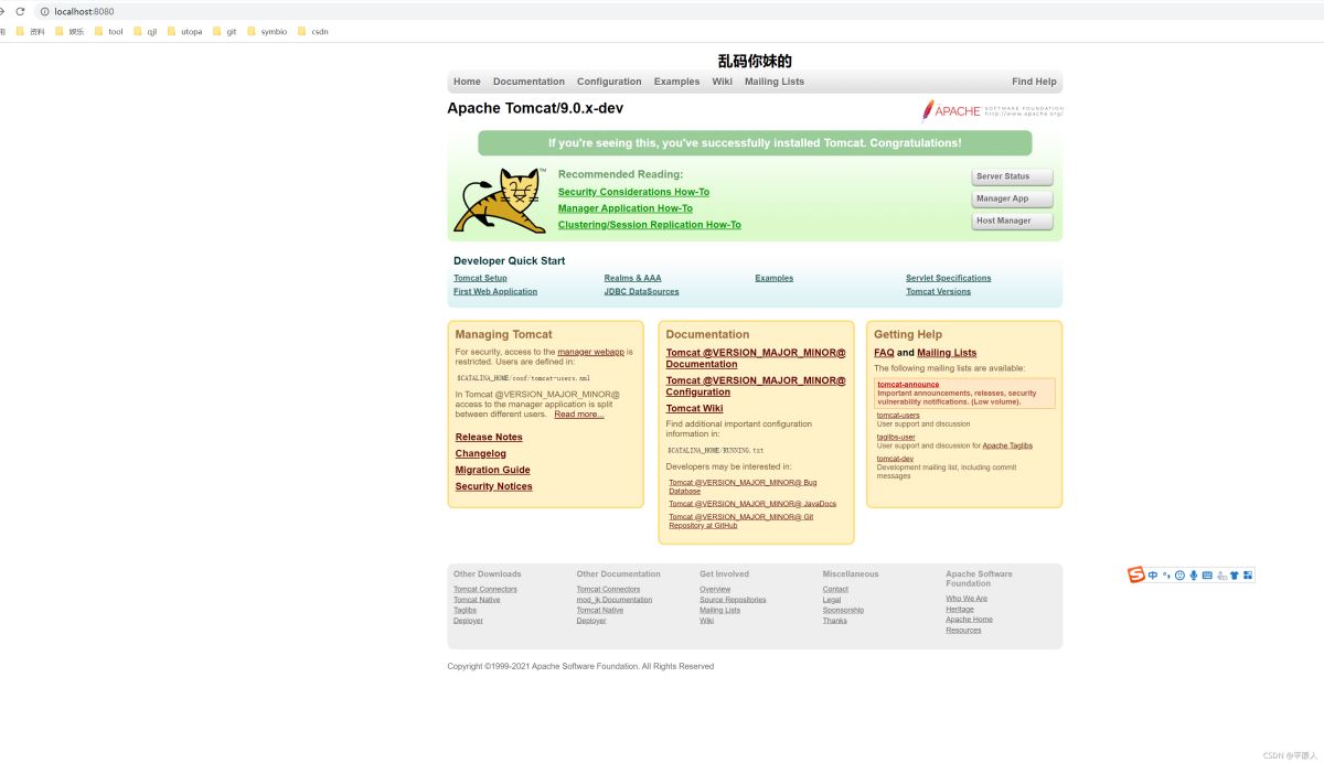 九月 29, 2021 3:52:17亂碼 修改conf/logging.properties的編碼(現在默認utf-8,基本無修改) 警告: 使用[SHA1PRNG]創(chuàng)建會話ID生成的SecureRandom實例花費了[149]毫秒 亂碼