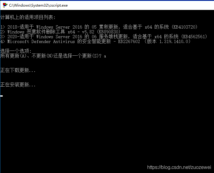 使用 PowerShell 運行 sconfig,然后選擇 6,然后輸入 A 下載所有更新: