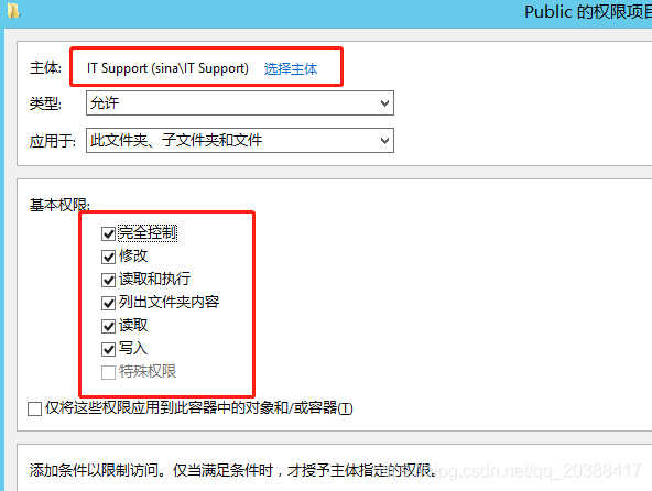 選擇要給的權(quán)限,我這里給的是完全控制權(quán)限,直接給IT Support這個組