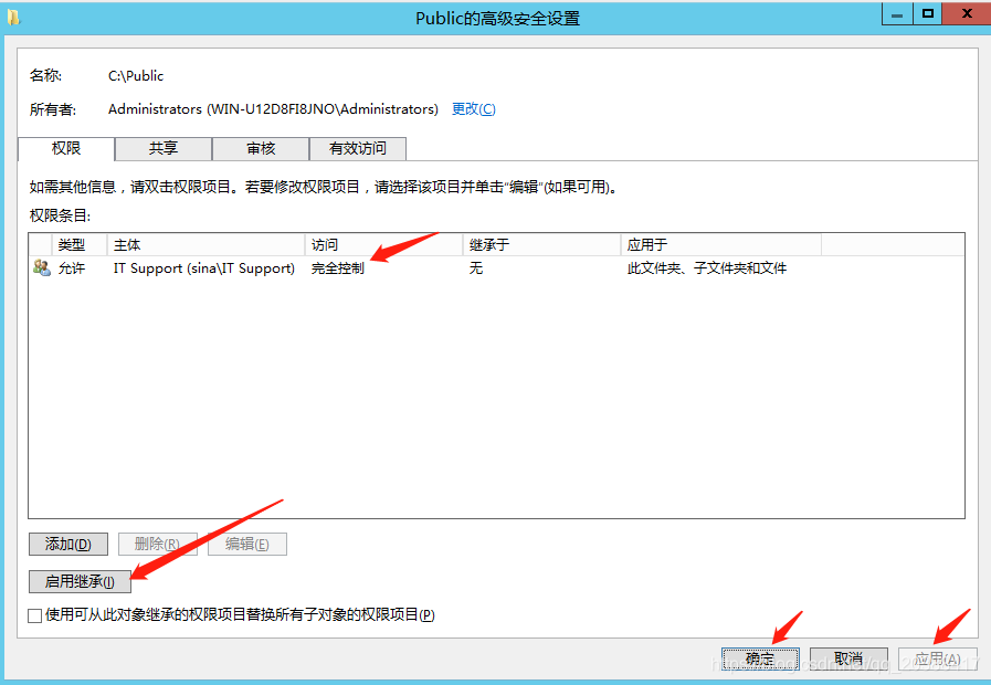 我們先禁用繼承,然后在添加自己要設(shè)定的用戶權(quán)限