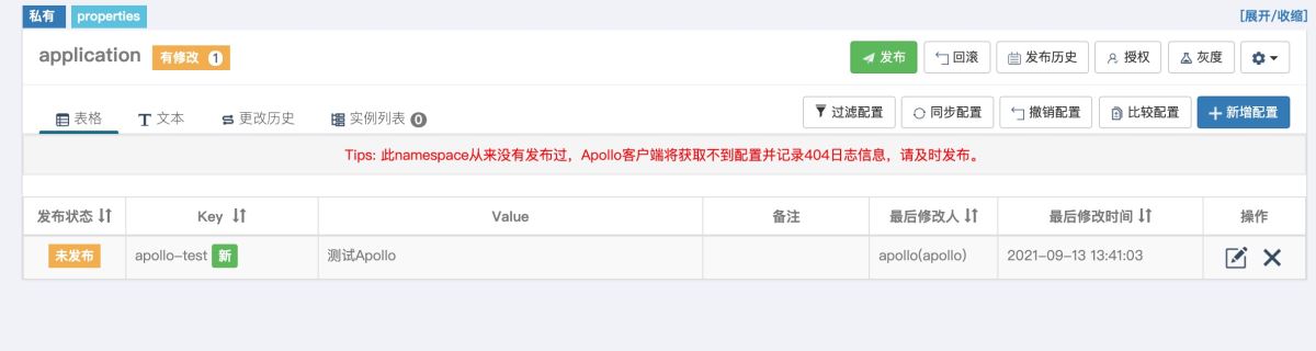 所以大家配置或者修改了Apollo一定記得發(fā)布,我們發(fā)布后再次刷新瀏覽器