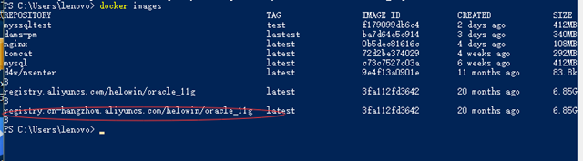 docker pull registry.cn-hangzhou.aliyuncs.com/helowin/oracle_11g