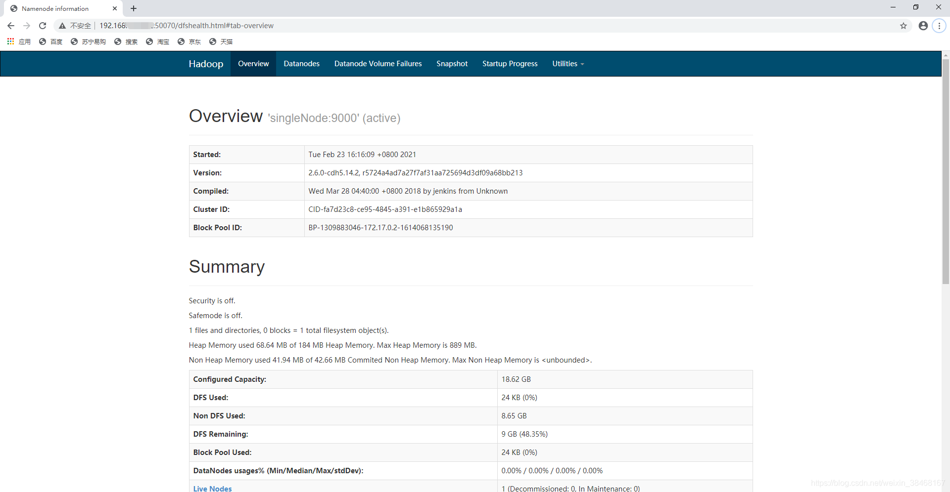 進(jìn)入容器:sudo docker exec -it singleNode /bin/bash