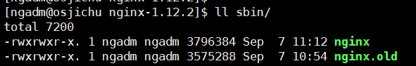 4、完成后1.20.1版本會自動在原sbin目錄下生產(chǎn)新的nginx二進制文件,舊的nginx會自動被替換成nginx.old