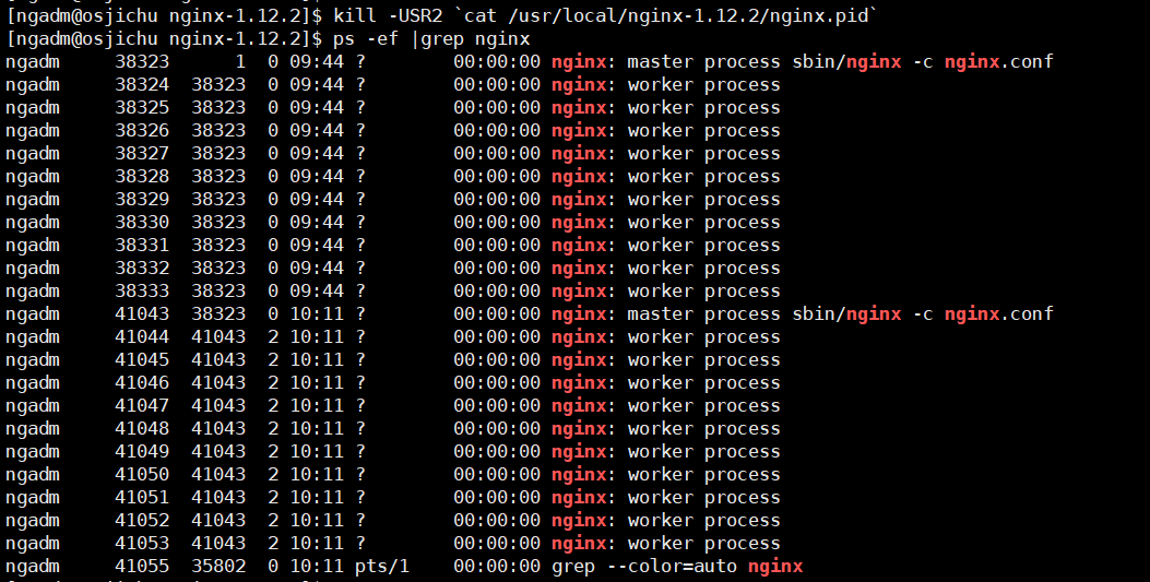 kill -USR2 38323(舊進程PID為38323) ps -ef |grep nginx