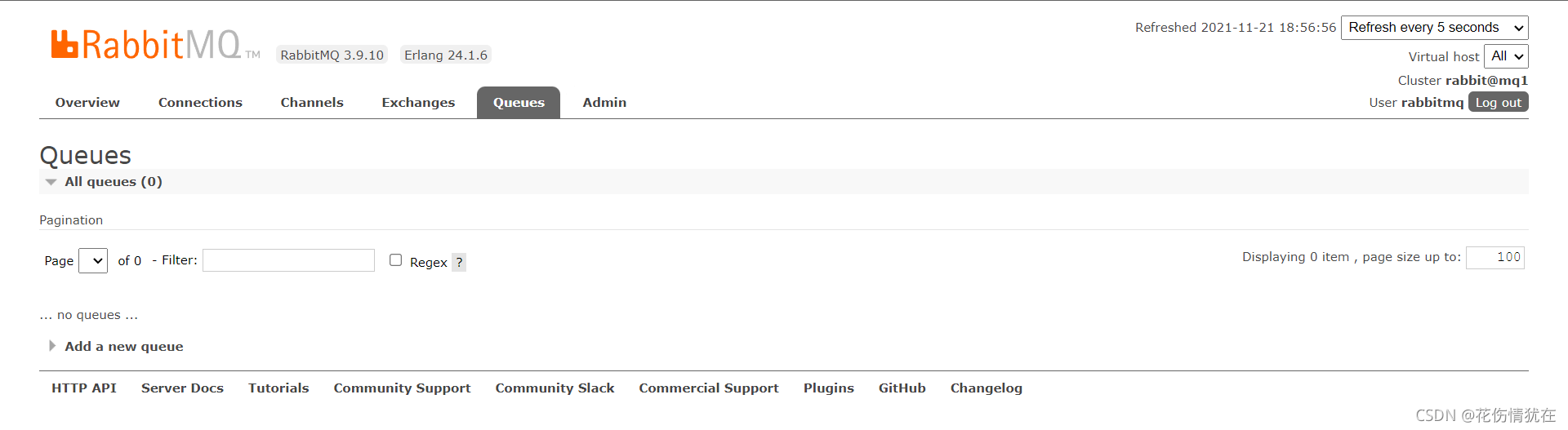 注:rabbitmq:3-management是一個基于瀏覽器圖形的管理界面,用于管理、監(jiān)控rabbitmq的運行情況,它是以插件的形式提供的。