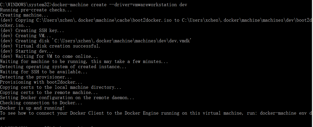 然后將 boot2docker.iso 放在 C:\Users\<用戶名>\.docker\machine\machines\dev\,文件夾不存在就自己建立。
