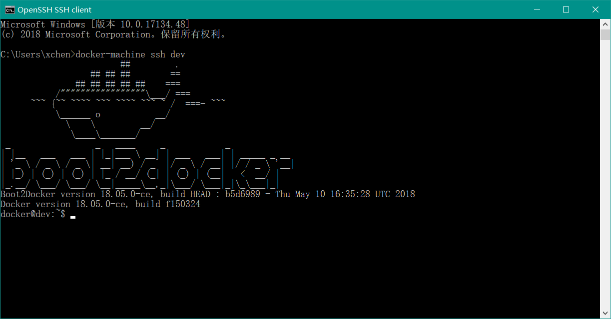 因?yàn)槲覀兪褂玫腣M,所以我們在使用docker的時候,必須保證vm的dev示例是在運(yùn)行的: