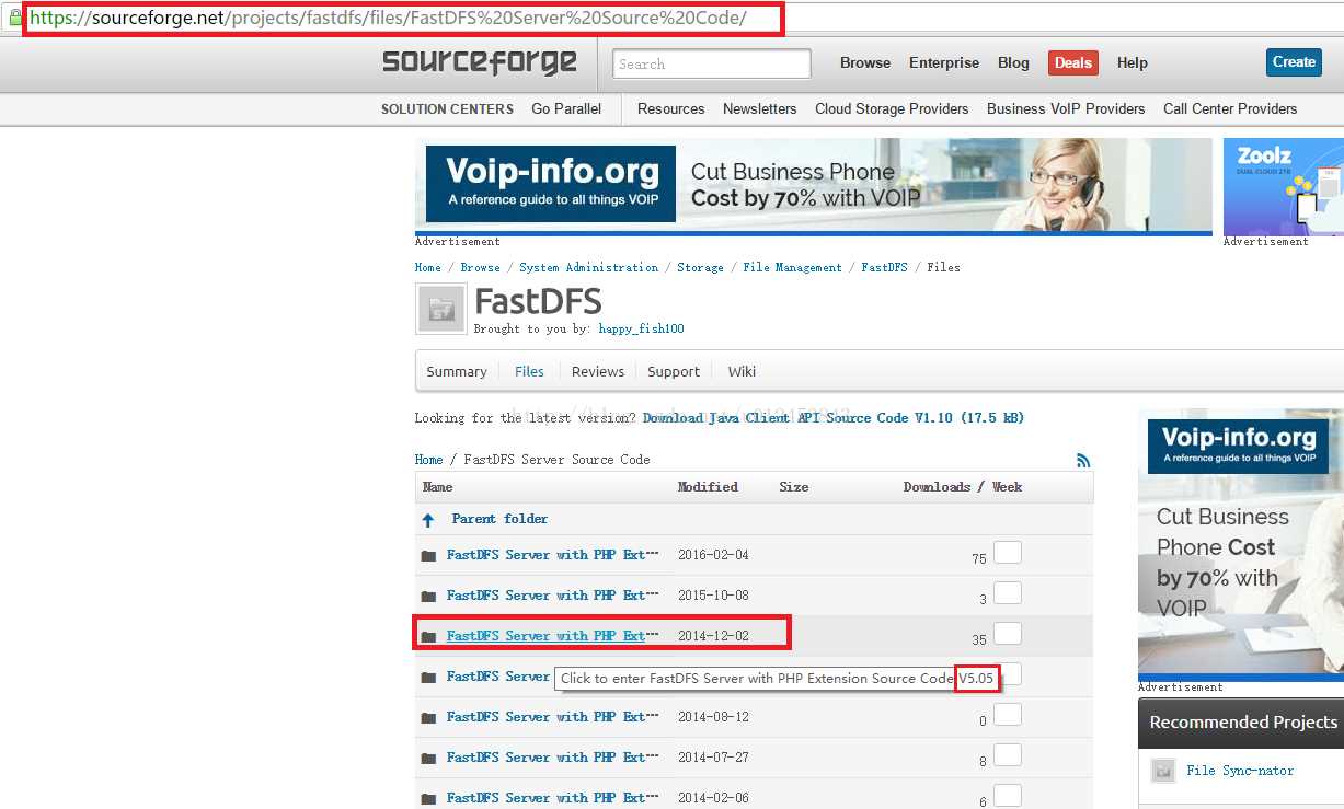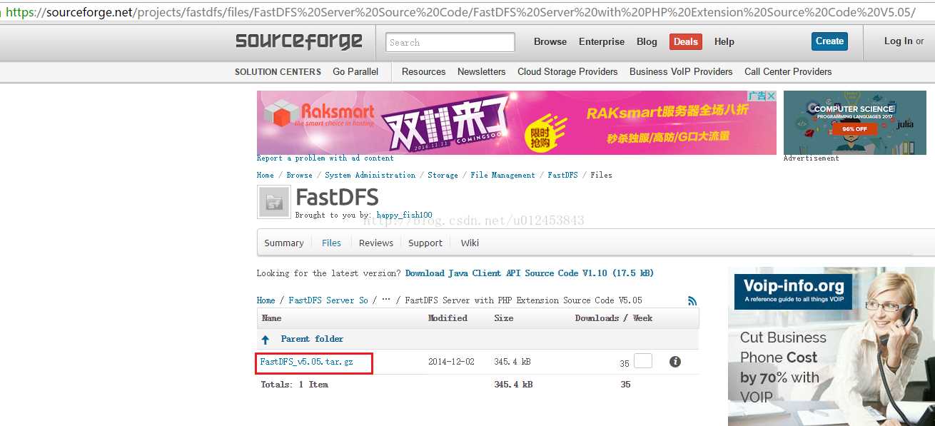 第一步:大家在瀏覽器地址欄輸入:https://sourceforge.net/projects/fastdfs/files,我們會(huì)看到如下圖所示界面。