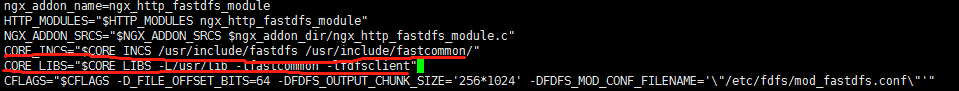 首先解壓fastdfs-nginx-module_v1.16.tar.gz,修改/fastdfs-nginx-module/src/config文件。去掉所有的local(三個(gè))