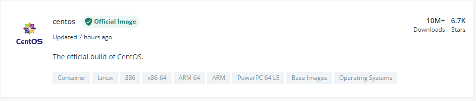 我們?cè)赿ockerhub中搜索centos官方鏡像,看一下的官方dockerfile文件。