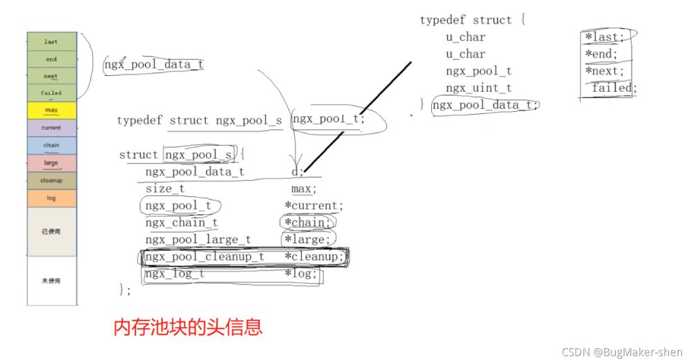ngx_pool_data_t d; // 內(nèi)存池塊頭信息