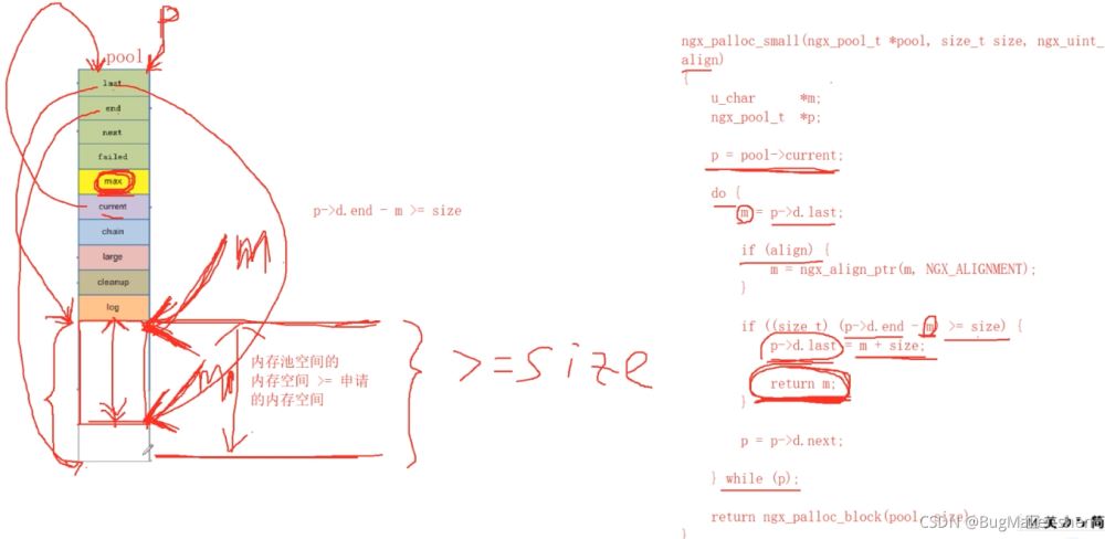 m = p->d.last; // m指向可分配內(nèi)存的起始地址