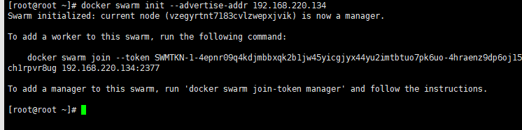 # 初始化主節(jié)點(diǎn) docker swarm init --advertise-addr 192.168.220.132 # 133,134 加入worker 在 132 上執(zhí)行 docker swarm join-token worker # 增加work (manager-- 主節(jié)點(diǎn) 管理節(jié)點(diǎn)) # 對應(yīng)機(jī)器執(zhí)行 docker swarm join --token SWMTKN-1-49blzc9unsa1e8vcb4sonqx2q2rq02588jqjbhfzykowgtaoy1-57s37b21k0h39j0ywf6vd6la1 192.168.220.132:2377