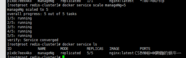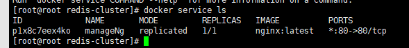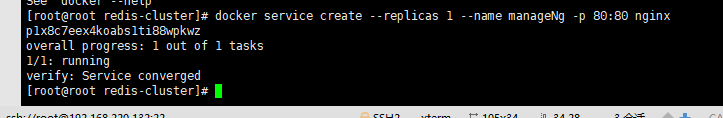docker service create --replicas 1 --name manageNg -p 80:80 nginx