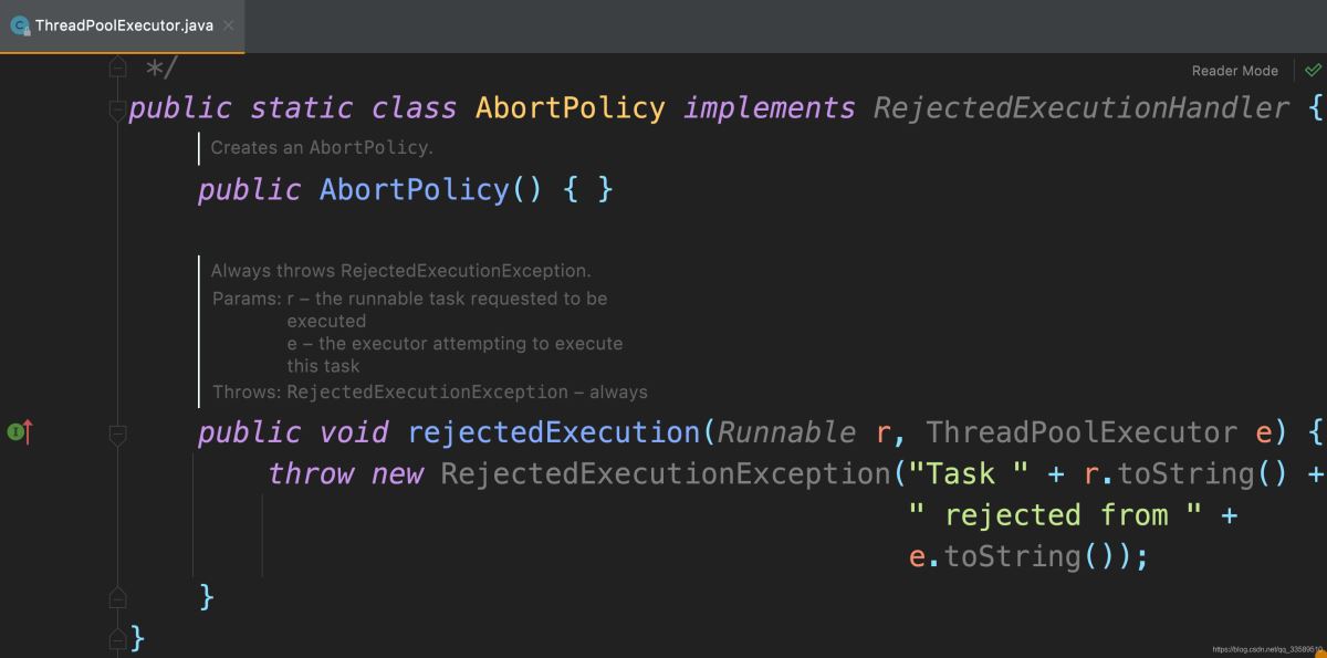 // 總線程數(shù)達(dá)到maximumPoolSize后,JDK原生線程池會(huì)執(zhí)行默認(rèn)拒絕策略