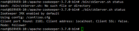 docker exec -it zookeeper_node /bin/bash ./bin/zkServer.sh status