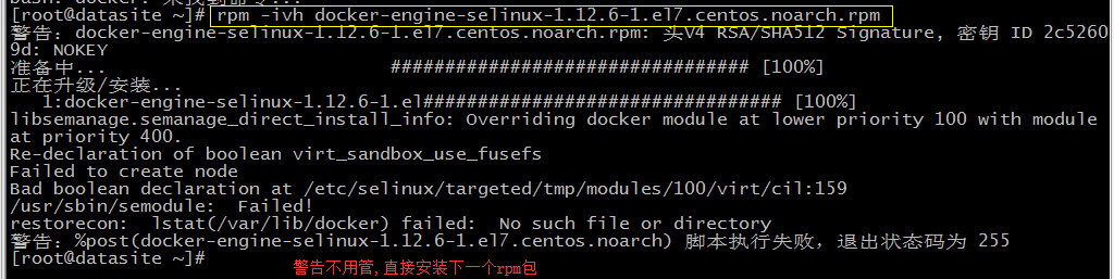 rpm -ivh docker-engine-selinux-1.12.6-1.el7.centos.noarch.rpm