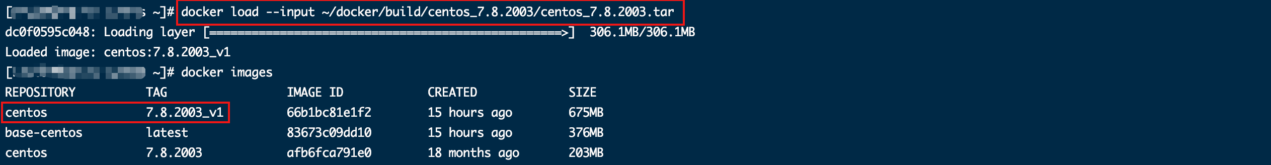 docker load --input ~/docker/build/centos_7.8.2003/centos_7.8.2003.tar