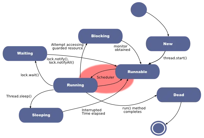 - Waiting指的是一個(gè)線程拿到了鎖,但需等待其他線程執(zhí)行某些操作。比如調(diào)用了Object.wait、Thread.join或LockSupport.park方法時(shí),進(jìn)入Waiting狀態(tài)。前提是這個(gè)線程已經(jīng)拿到鎖了,并且在進(jìn)入Waiting狀態(tài)前,os層面會(huì)自動(dòng)釋放鎖,當(dāng)?shù)却龡l件滿足,外部調(diào)用了Object.notify或者LockSupport.unpark方法,線程會(huì)重新競(jìng)爭(zhēng)鎖,成功獲得鎖后才能進(jìn)入到Runnable狀態(tài)繼續(xù)執(zhí)行。