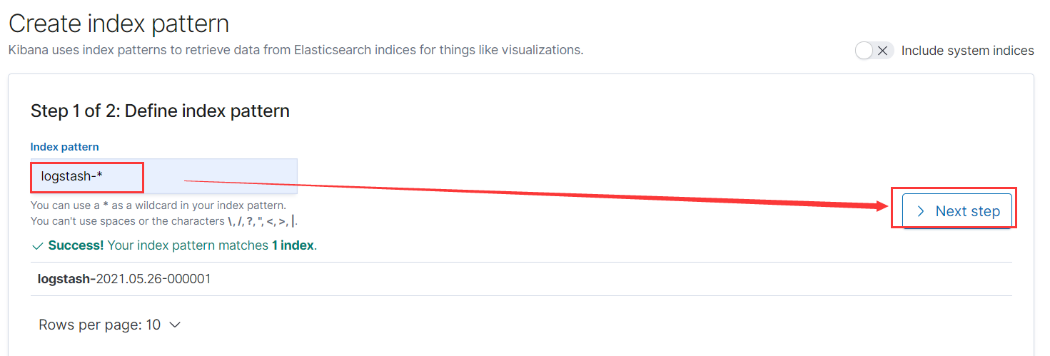 2)點(diǎn)擊index Patterns后,點(diǎn)擊創(chuàng)建索引