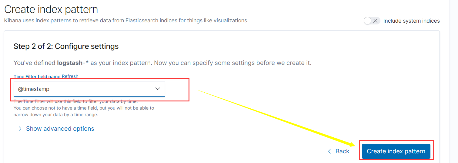 5)然后在Next Step(下一步)中選擇@timestamp的filter