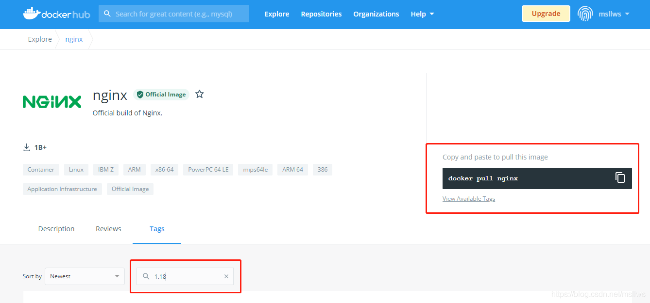 鏡像地址:https://hub.docker.com/_/nginx?tab=tags