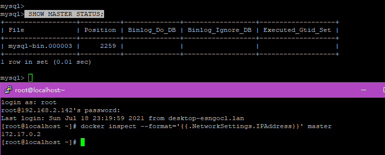 從服務(wù)器連接主服務(wù)器(兩臺從服務(wù)器均是以下操作)