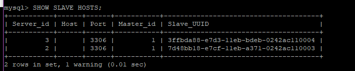 能從主服務(wù)器查詢到兩臺從服務(wù)器的ID以及端口。完成MySQL部署。