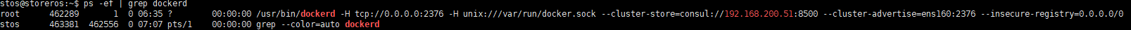sudo vim /lib/systemd/system/docker.service #ExecStart=/usr/bin/dockerd -H fd:// --containerd=/run/containerd/containerd.sock ExecStart=/usr/bin/dockerd -H tcp://0.0.0.0:2376 -H unix:///var/run/docker.sock --cluster-store=consul://192.168.20.5:8500 --cluster-advertise=eno3:2376 --insecure-registry=0.0.0.0/0