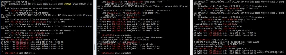 # 在192.168.20.5 docker run -d -it --name test1 --net=overlay-net centos bash # 在192.168.20.6 docker run -d -it --name test2 --net=overlay-net centos bash # 在192.168.20.7 docker run -d -it --name test3 --net=overlay-net centos bash