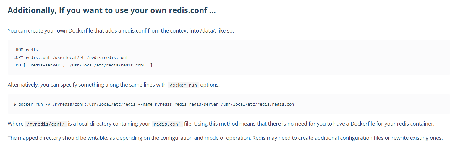 在 Docker Hub 中提到,需要自定義 redis.conf 使用 DockerFile 構建鏡像。