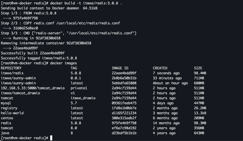 docker build -t itwxe/redis:5.0.8 .