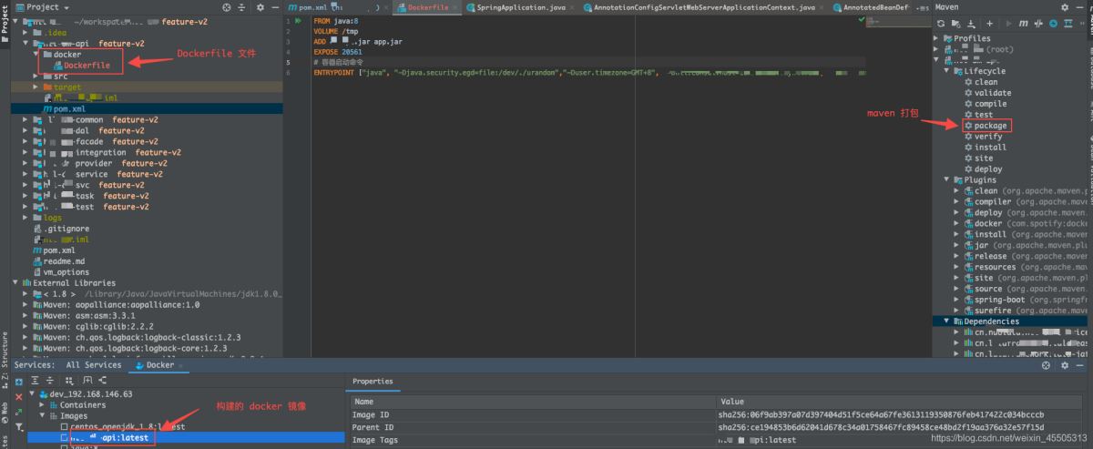 經(jīng)過以上配置,已經(jīng)將構(gòu)建 docker 鏡像的動(dòng)作綁定到了 maven 的 package 打包命令,則執(zhí)行打包即可