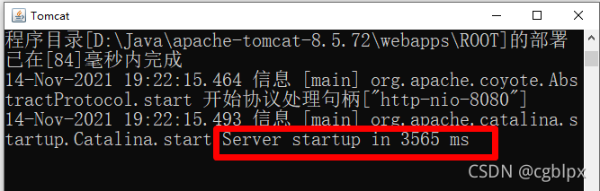 D:\Java\apache-tomcat-8.5.72\logs: 存放tomcat服務(wù)器運行時產(chǎn)生的日志文件的目錄,記錄每次啟動關(guān)閉的一些信息