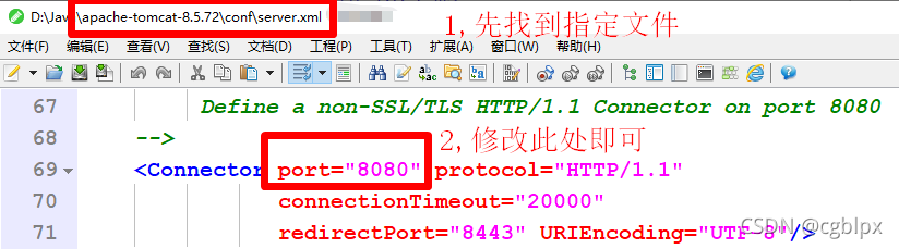 D:\Java\apache-tomcat-8.5.72\conf\server.xml: 存放tomcat服務(wù)器的核心配置,配置了主機(jī),端口號等