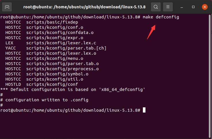 這里采用命令make defconfig使用默認(rèn)的即可,如下圖所示: