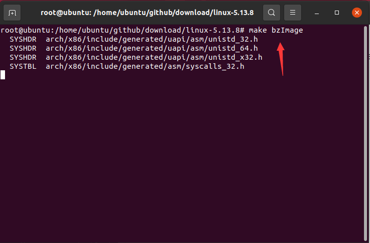 3、然后使用make bzImage命令編譯出內(nèi)核即可,如下圖所示: