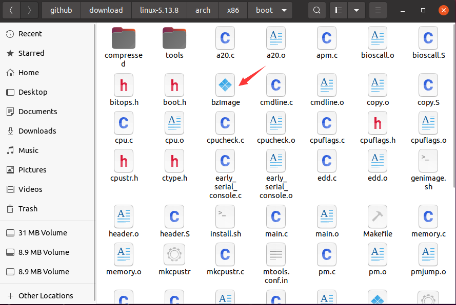 編譯好的內(nèi)核文件在arch文件夾相應(yīng)的架構(gòu)文件夾下面,如下圖所示: