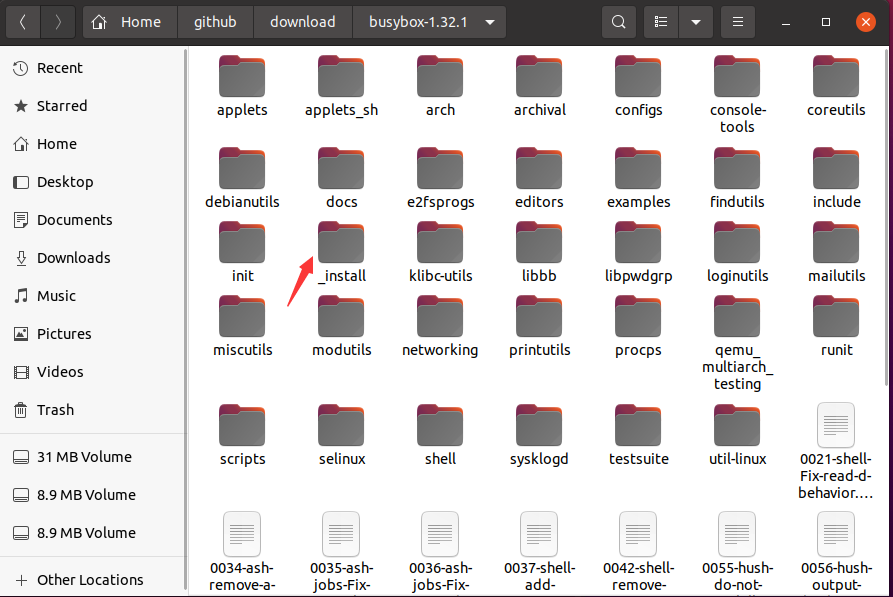3、然后使用make busybox install命令編譯busybox,編譯好后會(huì)在當(dāng)前目錄下面生產(chǎn)一個(gè)_install文件夾,如下圖所示: