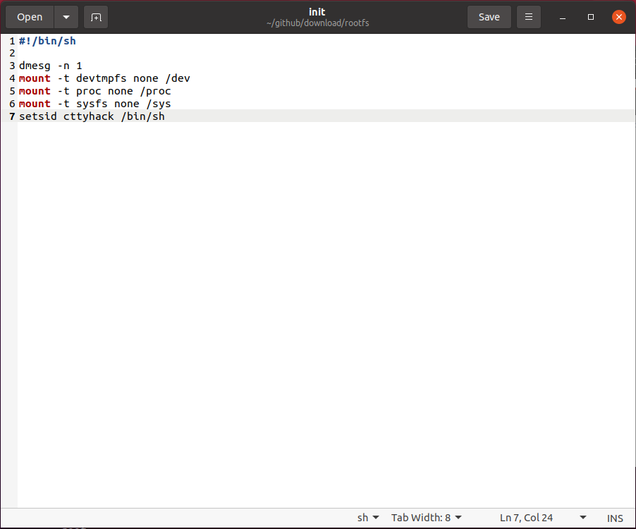 4、然后創(chuàng)建一個(gè)rootfs文件夾,并將_install文件夾下面除linuxxrc以外的所有文件及文件夾都拷貝到rootfs文件夾下面,最后創(chuàng)建dev等文件夾,最后在根目錄下面創(chuàng)建init文件即可,文件內(nèi)容如下圖所示: