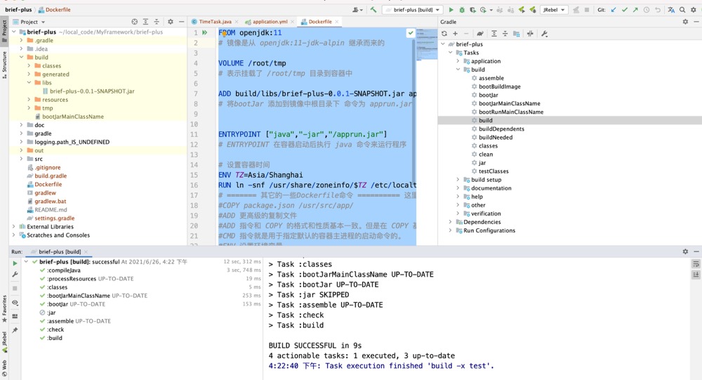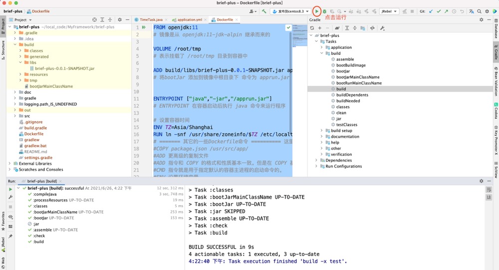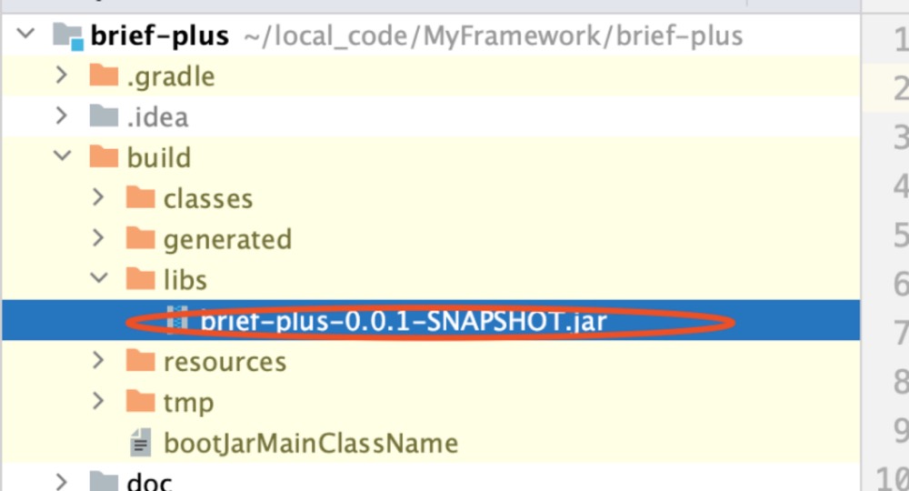 主要注意build/libs/brief-plus-0.0.1-SNAPSHOT.jar apprun.jar 這句話。 我是用的gradle編譯后的文件位于build/libs/ 目錄下 如下圖: