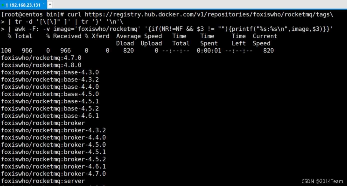 curl https://registry.hub.docker.com/v1/repositories/foxiswho/rocketmq/tags\