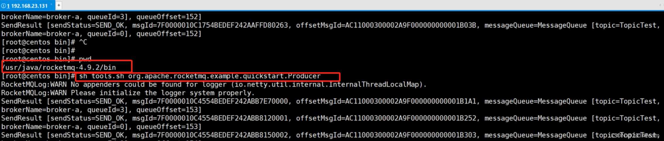 #測(cè)試消息發(fā)送命令 sh tools.sh org.apache.rocketmq.example.quickstart.Producer