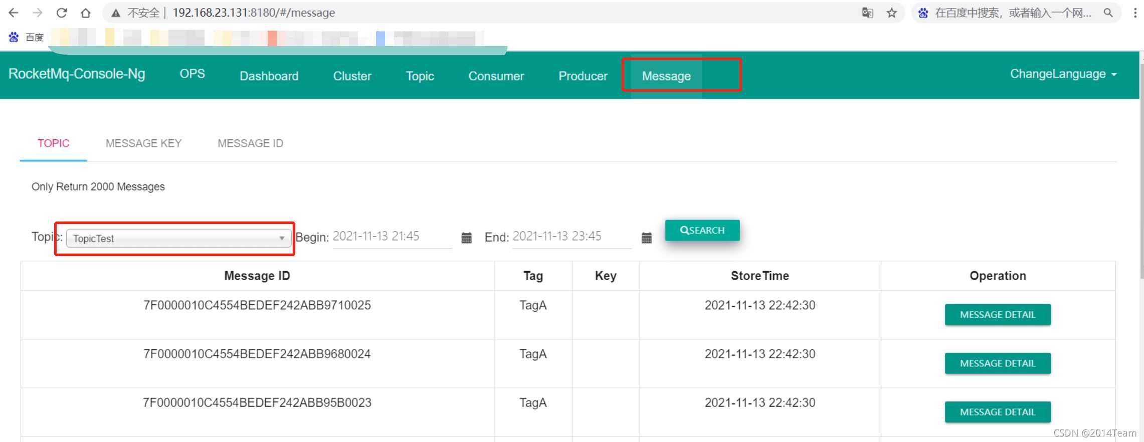 由于我在宿主機(jī)安裝rocketmq,測(cè)試如下: