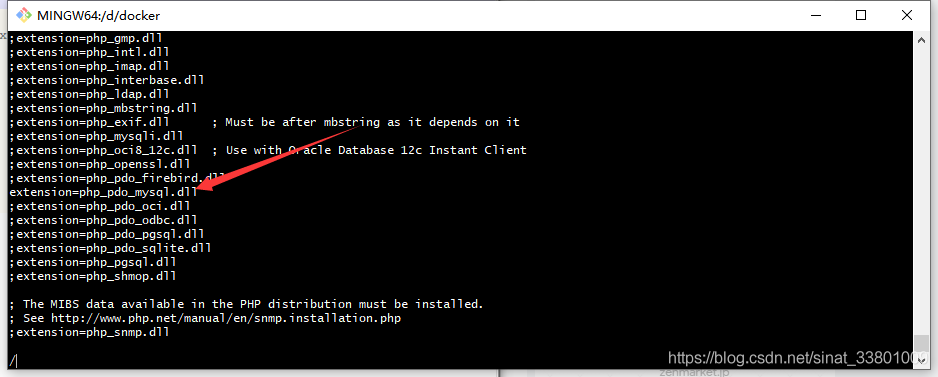 這個(gè)在使用之前安裝的命令之后phpinfo()并沒(méi)有mysql,需要進(jìn)入php.ini中去更改