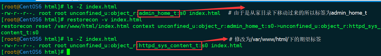 restorecon reset /var/www/html/index.html context unconfined_u:object_r:home_root_t:s0->unconfined_u:object_r:httpd_sys_content_t:s0