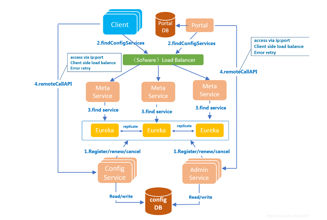 - Meta Server從Eureka獲取Config Service和Admin Service的服務(wù)信息,相當(dāng)于是一個(gè)Eureka Client
